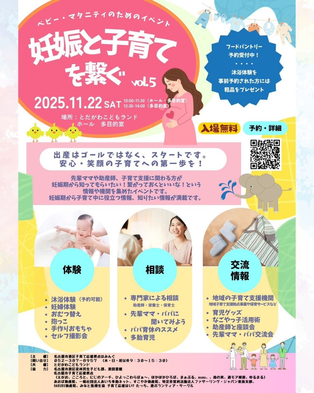 詳細は添付のチラシ、または名古屋市港区子育て応援拠点「はみんぐ」(@happy.hirobahamingu )さんの公式HPをご確認ください。