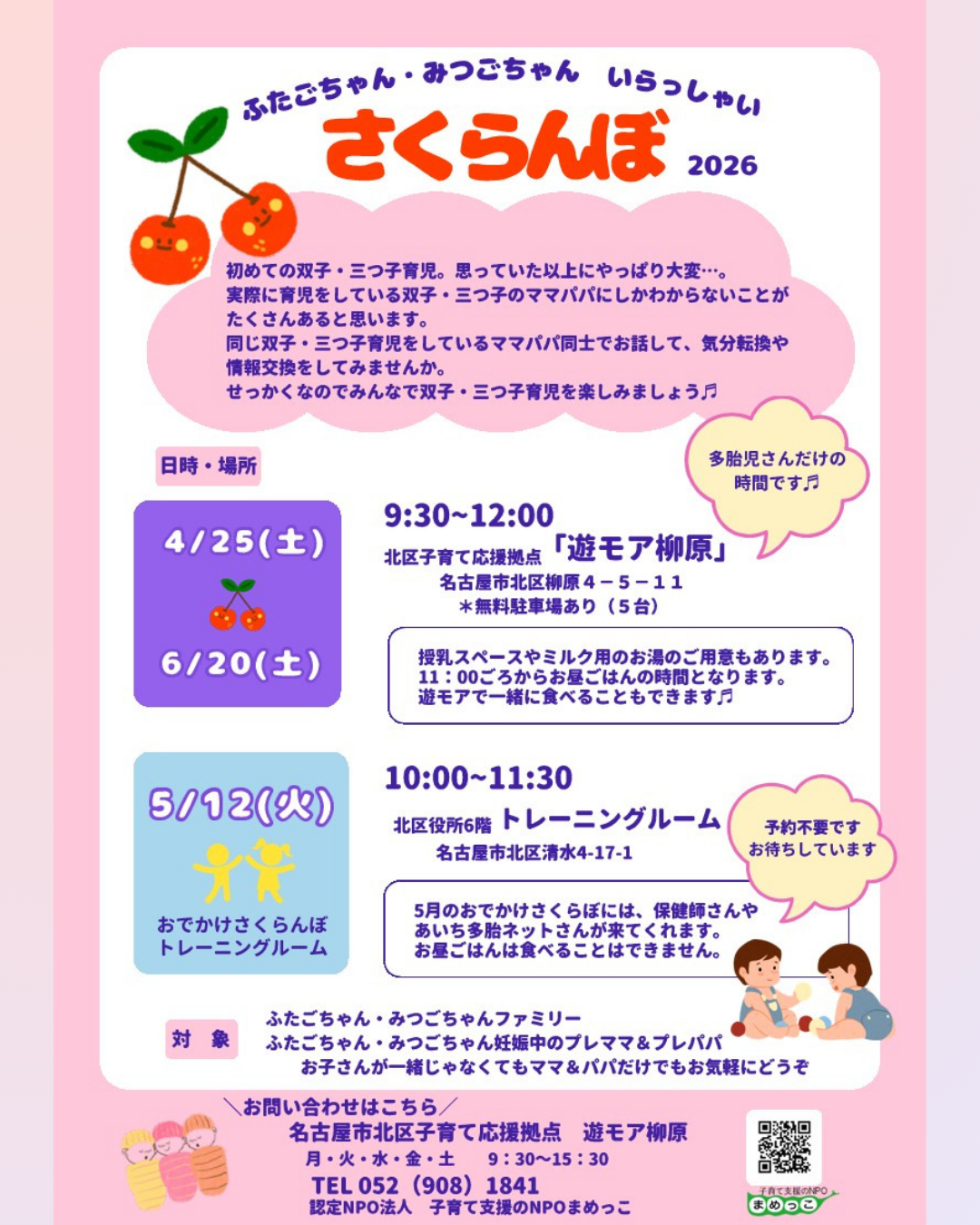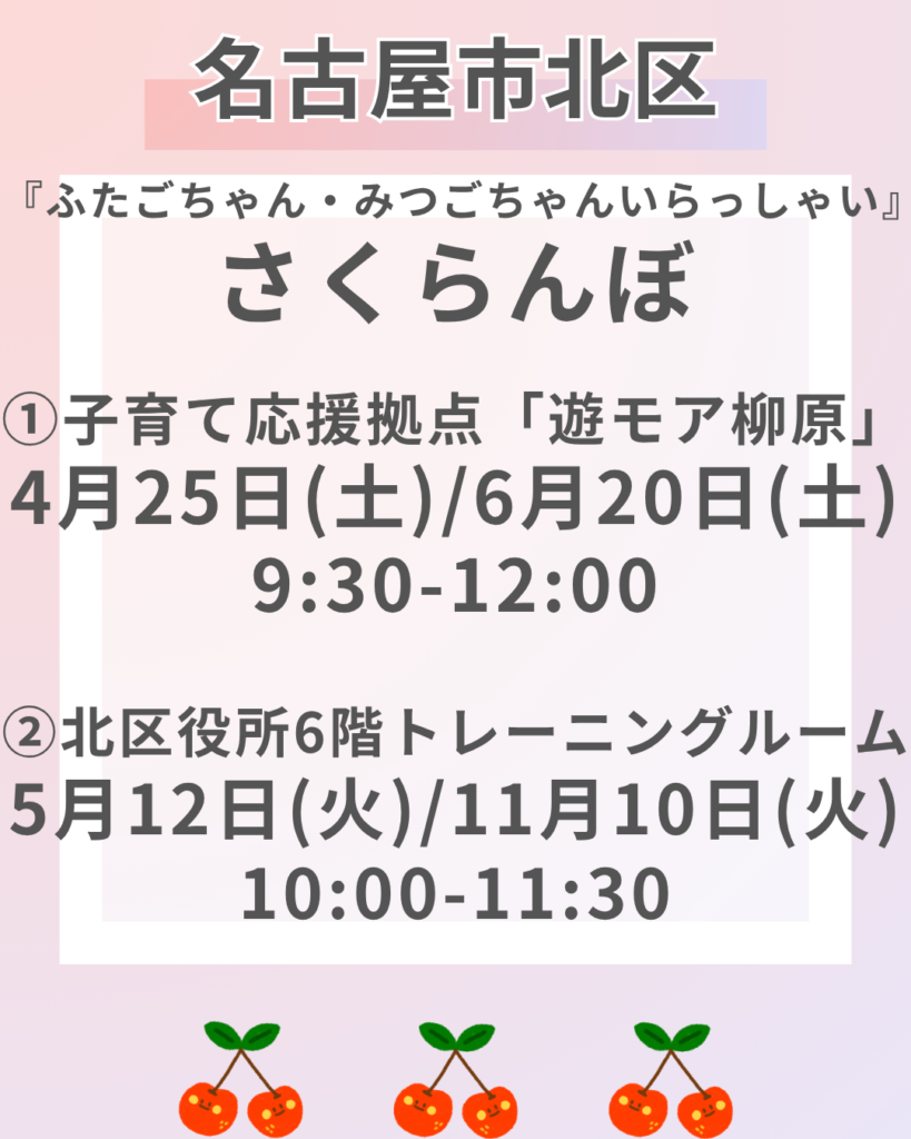 【お知らせ】子育て支援のNPOまめっこさん 主催『さくらんぼ』
