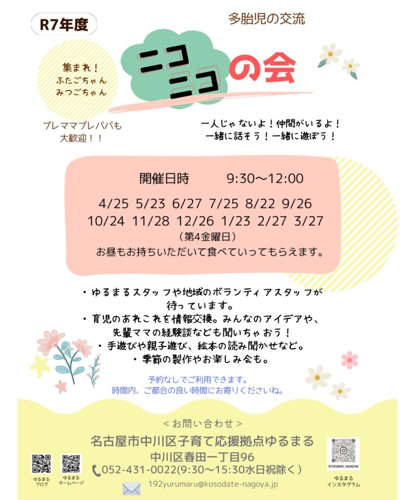 名古屋市中川区子育て応援拠点ゆるまるさん主催『ニコニコの会』開催のお知らせです🎉(@yurumaru_nakagawa)
