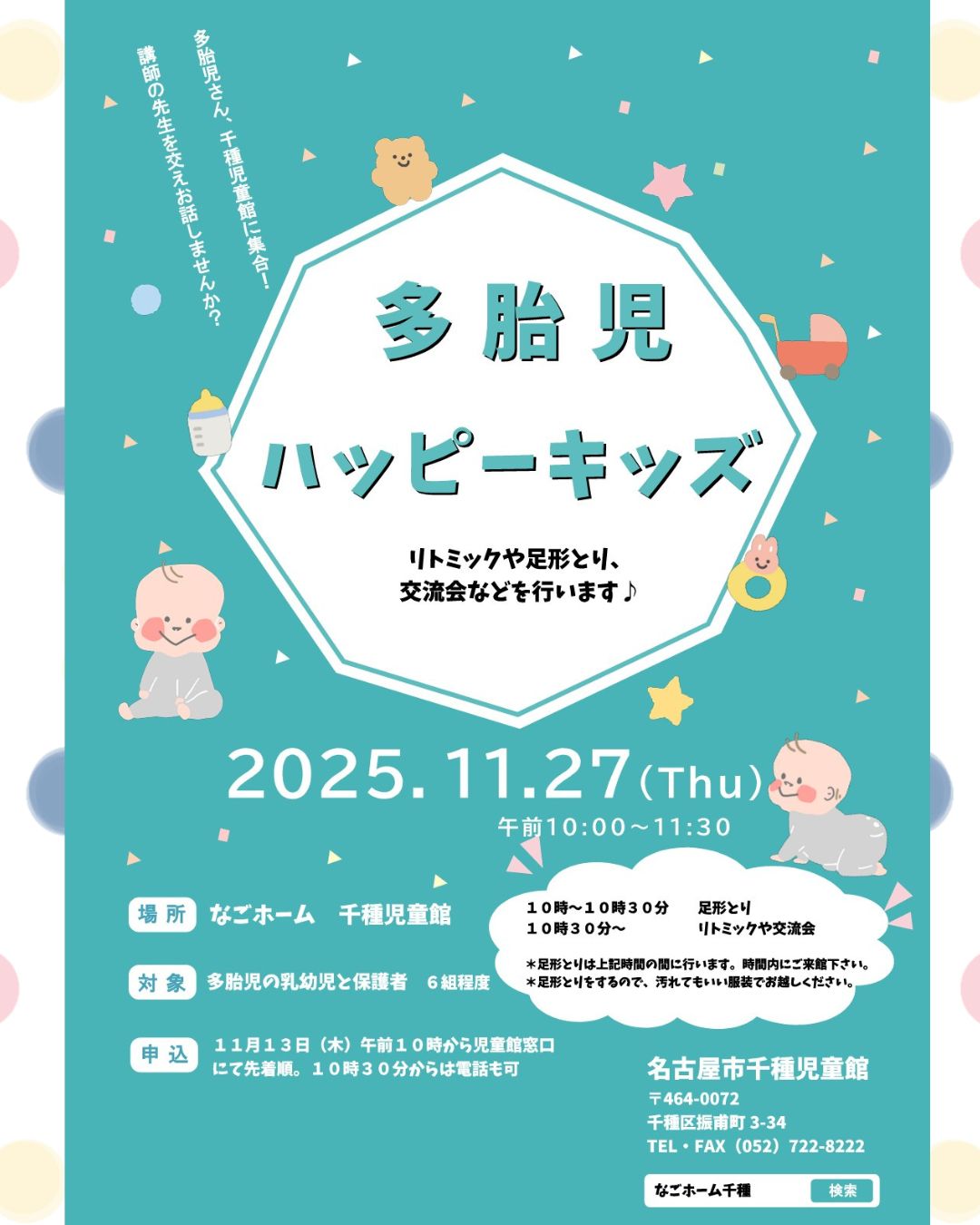 【千種区】千種児童館主催『多胎児交流会ハッピーキッズ』開催のお知らせ