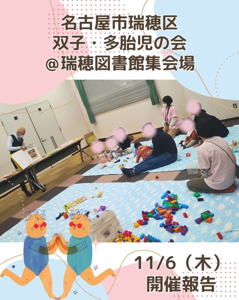 先日、名古屋市瑞穂図書館で瑞穂区子育て応援拠点「まぁぶる(@npo.nijiiro )」さん主催の『双子・多胎児の会』が開催されました。