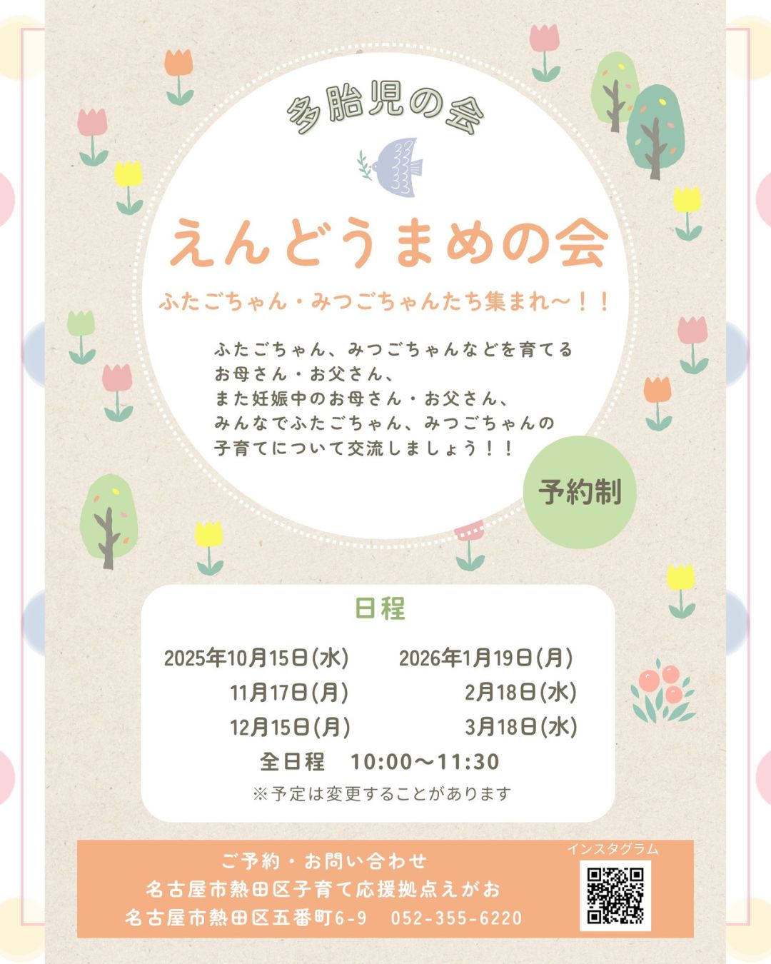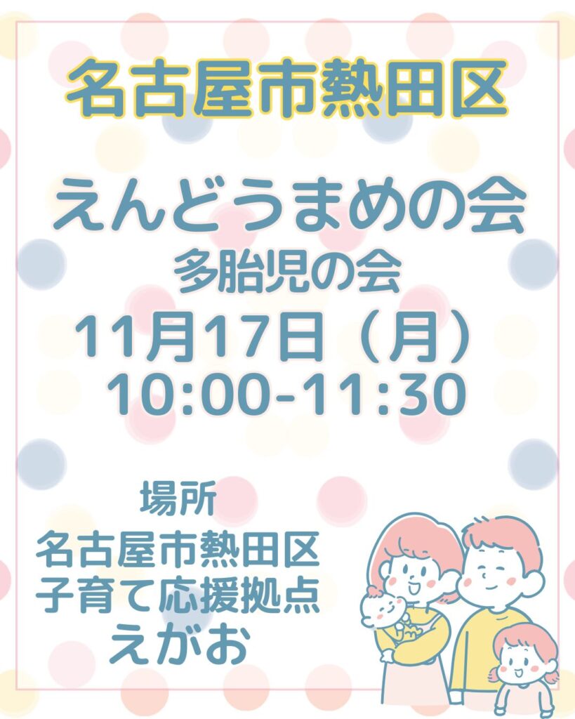 名古屋市熱田区子育て応援拠点えがおさん主催『えんどうまめの会』のお知らせです🌿