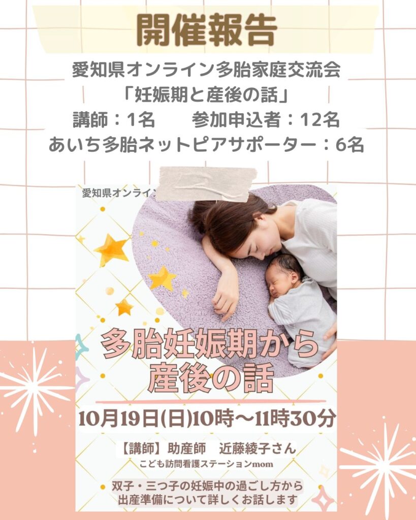 先日、愛知県オンライン多胎家庭交流会「妊娠期と産後の話」を開催しました。