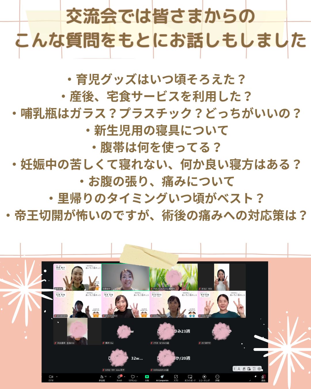 交流会では、様々な質問や回答が飛び出しとても有意義な会となりました。質問の一例をあげておりますので、是非次回参加の参考にして頂けますと幸いです💖