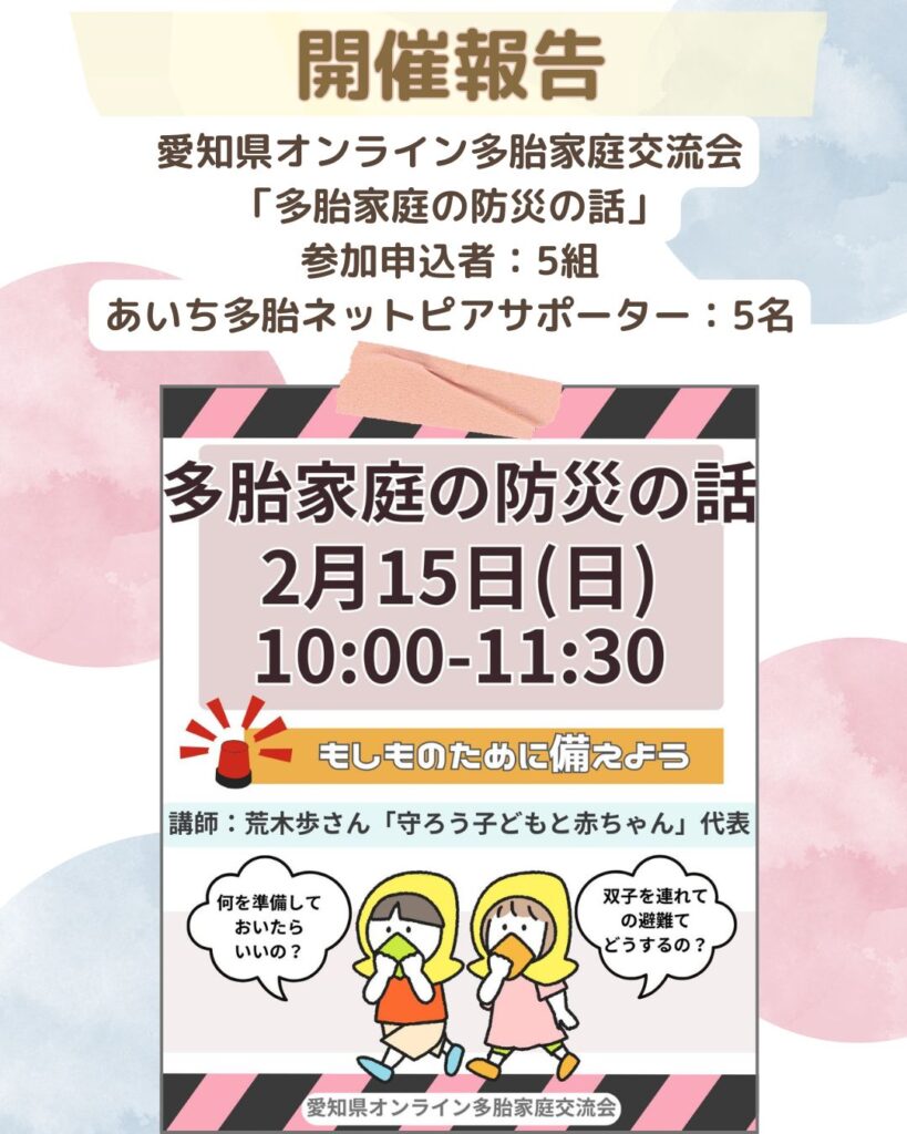 【開催報告】愛知県オンライン多胎家庭交流会を開催しました!
