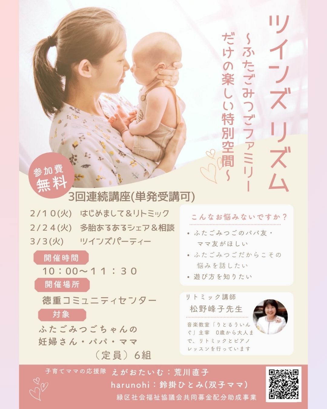 お申込み、詳細お問い合わせ&開催日当日の連絡先は、チラシに掲載のLINEQRコードより「harun☺hi子育て部」runohiのLINEまでよろしくお願いします❤️(当日の連絡先は08052938078・harunohi鈴掛さんまで☎)