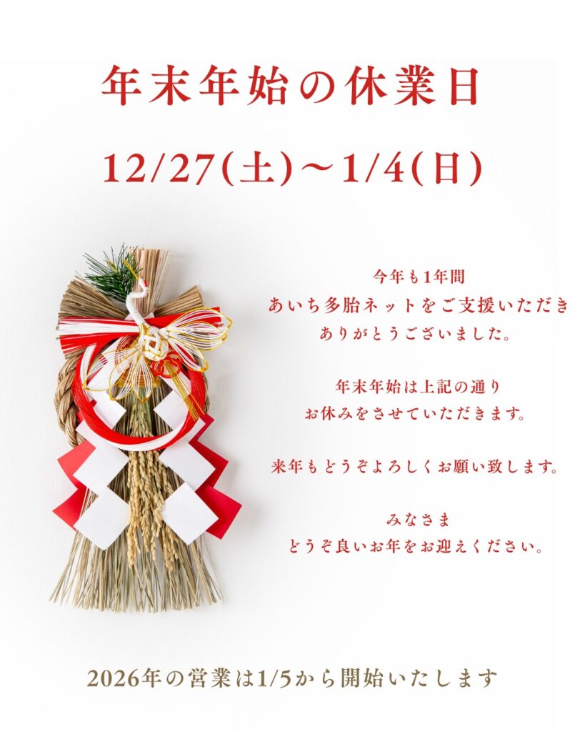 年末年始の休業日のお知らせです🎍
