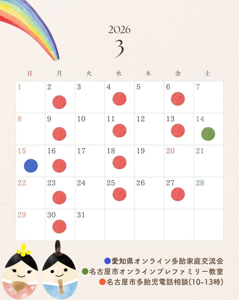 3月のあいち多胎ネット主催&参加イベントのお知らせです。
